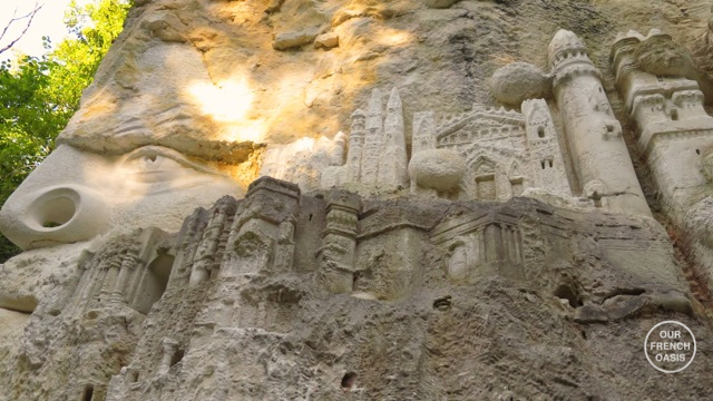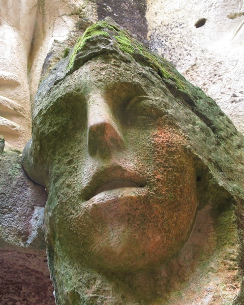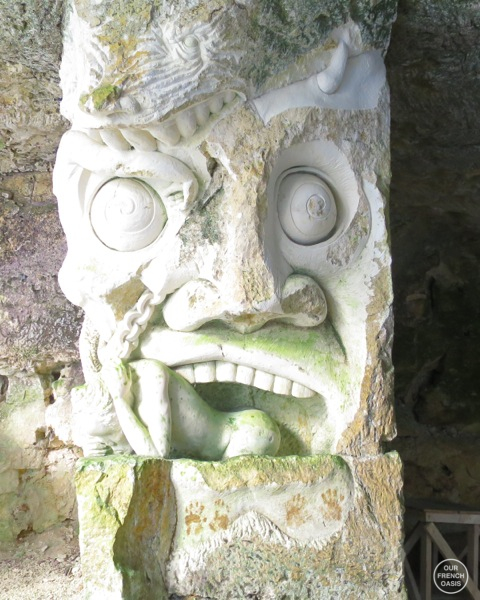 We parked the car in a deserted lay-by where we saw a quarry a little way down a track, and hopped out for a quick look. Two other people were wandering around in what was obviously a deserted attraction, and it seemed our luck was out for the year. Port d’Enveaux lies by the River Charente, and is a popular destination for canoeists and kayakers, but the stone carvings seem strangely lost in the general tourist blurb