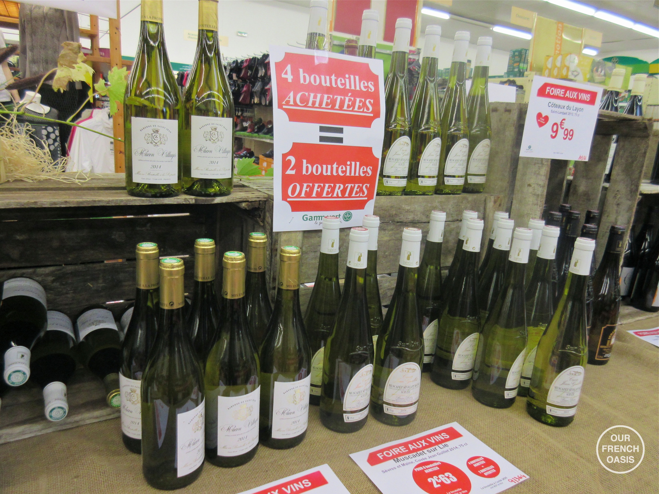 It’s lucky that there are no limits on wine between European countries and that it happens to be that time of year in France when every shop, supermarket and market stall is celebrating the Foire aux Vins.  Shelves are bursting with bottles of red, rosé, white and sparkling and there is plenty of champagne and the local Pineau Charente.