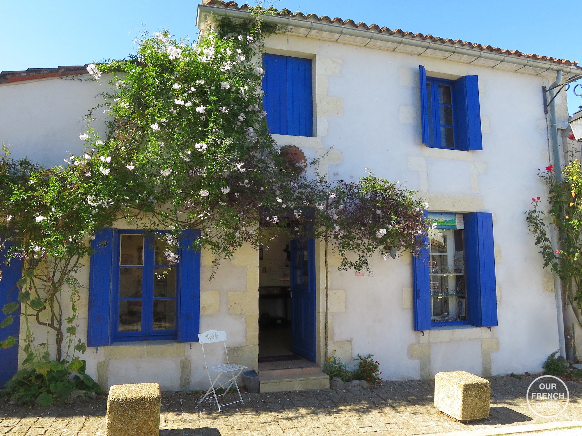 Away from the market we wandered through the narrow streets which were a classic example of a Charente Maritime coastal village; hidden away here and there amongst the white painted houses with their green or blue shutters were several little artisan shops. There was a jeweler or two, a leather-smith, painters, a glass-blower, a fine porcelain artist and a wonderful house of curiosities that we lost Roddy to for half an hour. We had no idea where he had gone but when he re-emerged into the sunshine he was gabbling about shrunken heads, golden cowries and stuffed hippos. I think we will have to go back to check on that one !