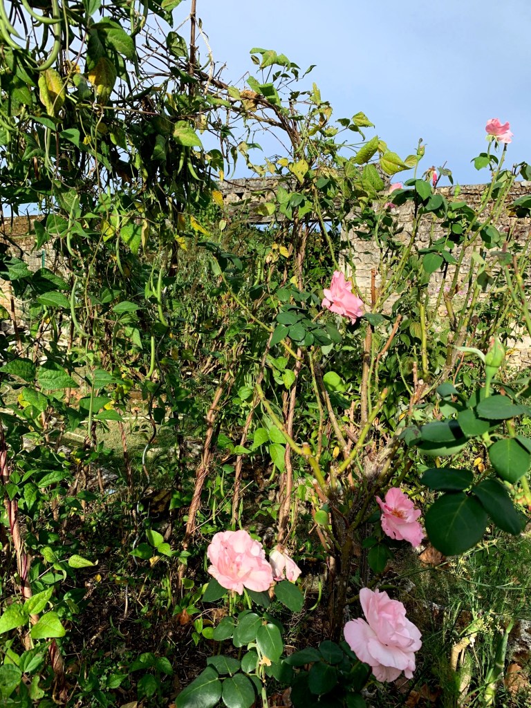 The vegetable garden, perhaps one of my favourite places, got off to a flourishing start with a very warm early spring. But the carrots appeared to fail to germinate, I thought it was just too dry and so I resowed and again they were a failure, but this time I noticed that the tiniest of seedlings did appear but were immediately eaten. Only on the third attempt did things go a little more smoothly. The green beans suffered a similar plight, as soon as they appeared they were eaten by slugs and snails and in the end I sowed these in pots in our mini greenhouse where I could keep a very firm eye on them and then transplanted them when they were about six inches high and it worked, they’re still going strong!