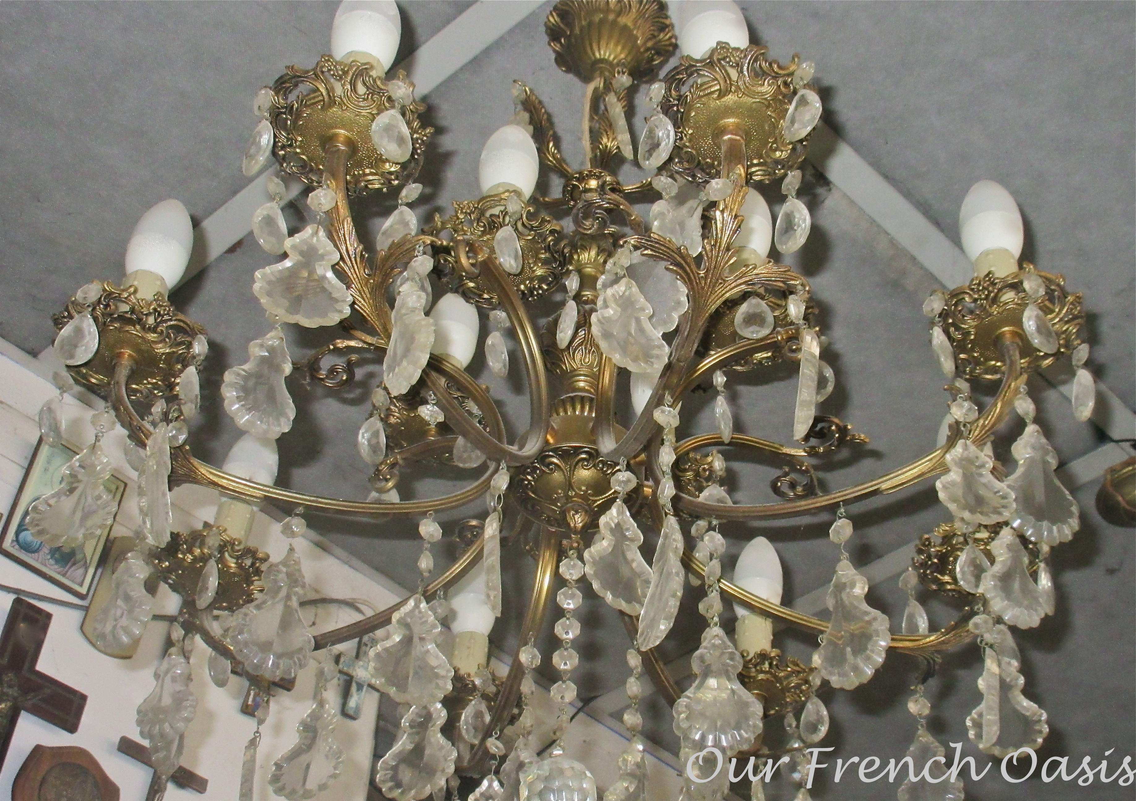 After an hour of questions it was time to head out for lunch, I looked around, amazed to think that so much of what I saw would be bought and put back into use over a period of time. But to be truthful, it was easy to understand, as there is a great deal of stuff in there that I really wanted to come home with me in the back of the car. Some to leave as is, and some to “play with” – a bit of sandpaper, a pot of paint, a little fabric – there is so much fun to be had in the world of brocantes. Most of all I really want this chandelier!