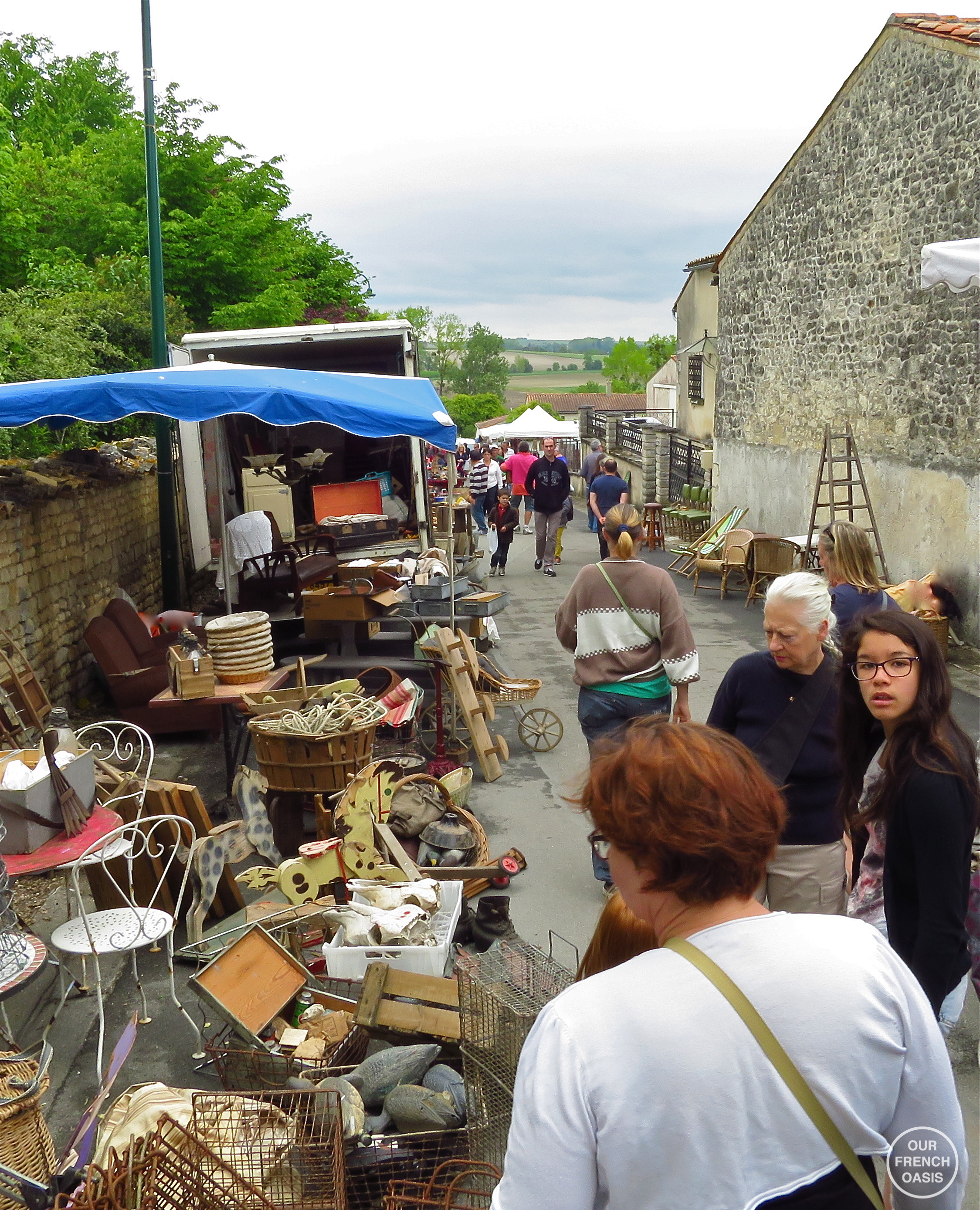 The ‘brocante’ is a French institution with a devoted following, both in France and overseas. Over the past few decades this world of bric-a-brac and antiques has grown significantly, especially since the advent of the internet. In a lot of countries, this has also led to a proliferation of television shows, magazines devoted to the subject and numerous websites and blogs featuring vintage homes with a French feel, many of which I love to follow. However, in France, the ‘brocante’ for many towns and villages is still what it always was, more of a working junk-shop than an antique shop, and with many items in stock being sold for re-use rather than profit. The country ‘brocantes’ we enjoy here in the Charente-Maritime have changed little over time, in ours we could as easily buy a cattle-trough for our cows, as we could a complete set of monogramed bed-linen for a newly-opened ‘chambres d’hôte’, for example.