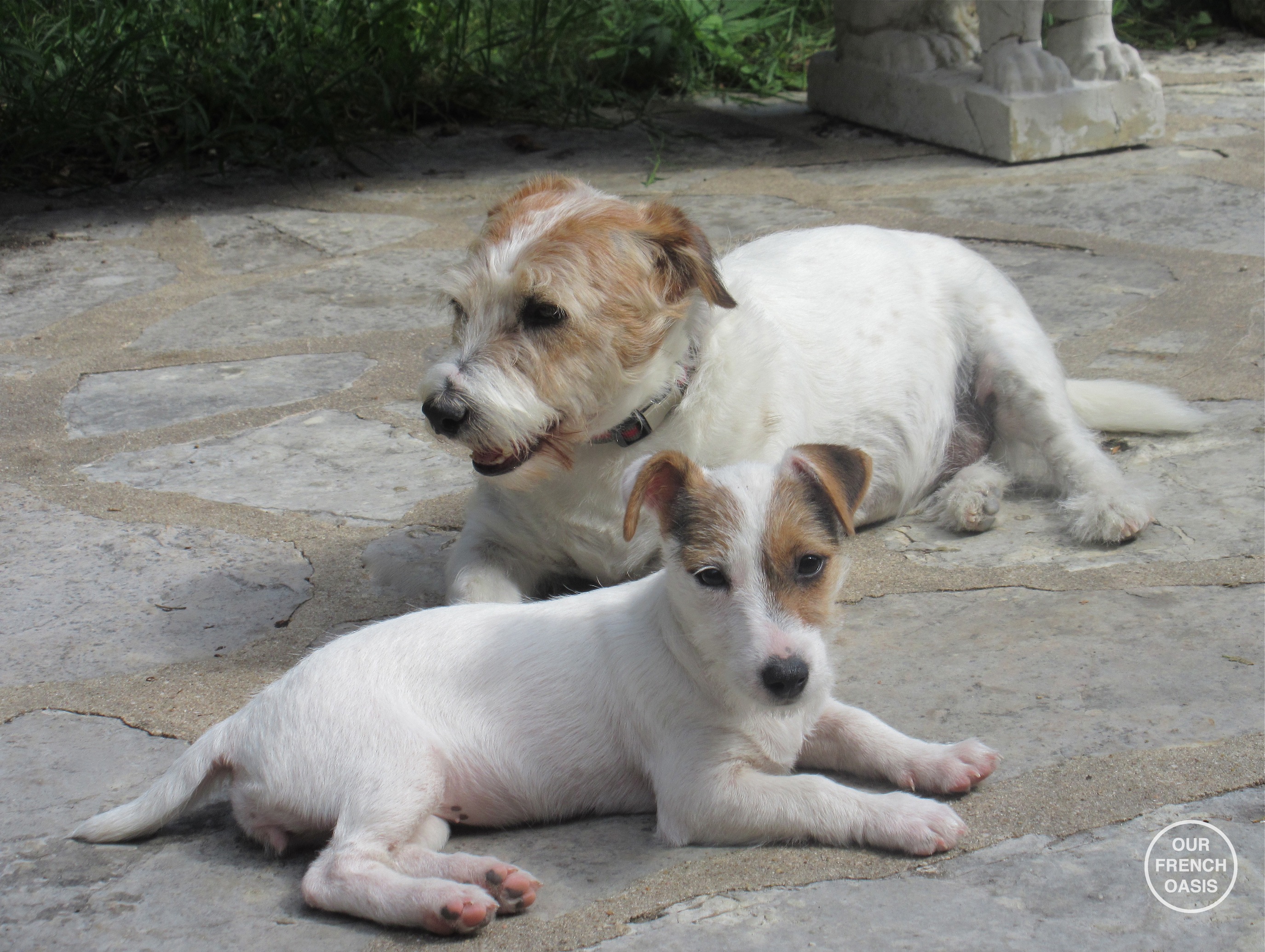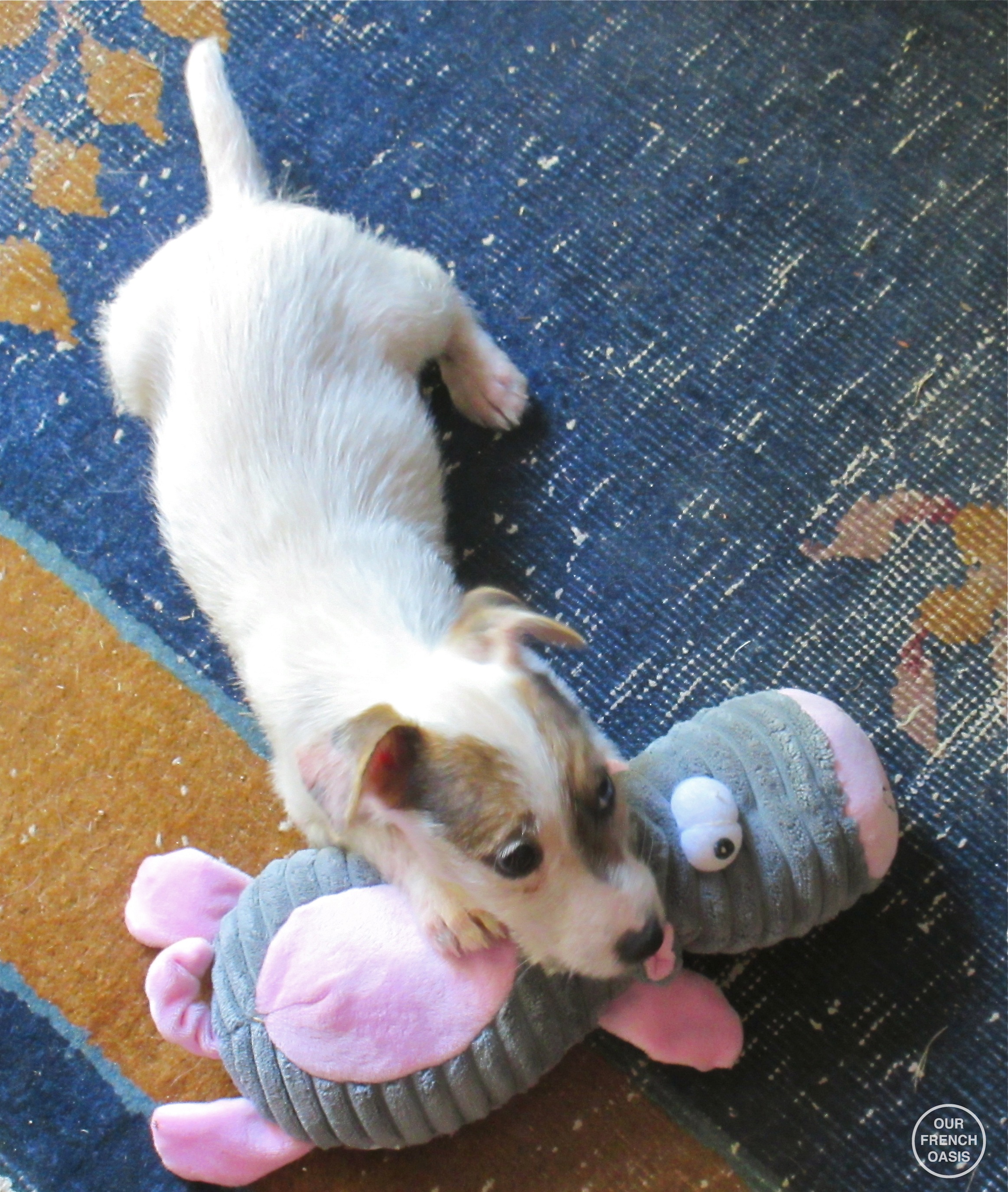 Day 1: a day fraught with anxiety and wonder. Who were these people ? Who were these small people ? Where was I going? I said goodbye to my parents and siblings and packed a small bag. We then all climbed into a large metal black box which made a lot of noise and moved. Although slightly anxious at developments, I then spent 2 hours being cuddled by small people (nice) as the black box moved about and made a humming noise (not so nice). When it stopped, I thought I would be put into another cage like at home, but instead I was set free on the ground and discovered in short order that there was a huge area of grass with trees and bushes, more people (one medium size and one large), another dog like me but bigger with a strange twangy sort of accent, and LOTS of things to chase. I got told off a lot, peed on a carpet and got told off some more. The sky is blue here and there is a faint smell of salt in the air. Goodness, it’s nice to be free. I spent a fair amount of time being cuddled more, and having my backside sniffed by the big dog. I can’t understand a word he says, you see I’m French and he’s not, nor can I understand the small people. The big people just speak very loudly to me. Food good and these people have some wonderful carpets to poo on!